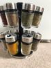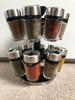Clear glass containers with Stainless Steel caps and holder.