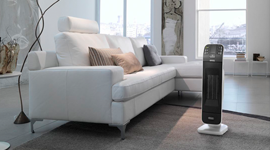 This Ceramic Tower Fan Heater from DeLonghi is the perfect personal heater as it provides direct warmth thanks to the safe and efficient ceramic heating element. The oscillating base efficiently and quickly distributes warm air, and the temperature, thermostat and timer are easily controlled with the remote control. Rest assured knowing that the Sicura System will automatically switch the heater off if it accidentally gets tipped over.