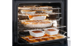 Shelf supports that smoothly extend to allow easier access to cooking, holding up to 15kg.