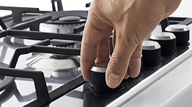 With the push of a button, the automatic electronic ignition device begins to spark to quickly ignite the flame of the selected burner. This ensures starting your flame is very safe and effortless.