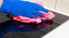 The smooth glass surface is resistant to dirt and simply takes a wipe down with a damp cloth once cool to remove any spills.