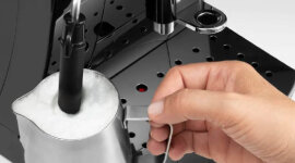 With just a touch of a button, you can enjoy your favourite caffeinated beverage in the comfort of your own home. You can customise your drink with the right level of coffee aroma and quantity to suit your taste and your favourite beans. The integrated grinder uses conical steel grinders for optimal and accurate grinding, creating a high quality espresso. Using the manual milk frother, you can make rich, velvety foam to accompany your freshly brewed espresso.
