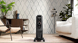 The oil-filled column design ensures quiet operation without fan noise, creating a calm and comfortable environment suitable for bedrooms, home offices, or living areas. Its contemporary grey finish complements modern interiors, while integrated castors allow easy movement between rooms.