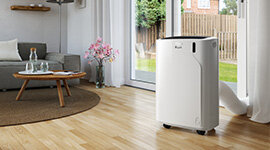 This versatile unit offers more than just cooling. A built-in dehumidifying function extracts up to 50 litres of excess moisture per day, helping to maintain a fresh and pleasant indoor climate, while the fan-only mode provides gentle air circulation whenever cooling isn’t required. The 24-hour electronic timer and thermostat allow you to customise operation to match your daily routine, ensuring comfort exactly when you need it.