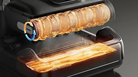 The intelligent robotic arm automatically lowers when the vacuum moves forward, maintaining close contact with floors and edges. This design enables precise triple-edge cleaning, effectively removing dirt from walls, corners, and narrow gaps.