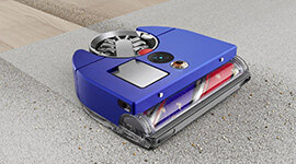 Powered by a Dyson Hyperdymium motor spinning at up to 110,000rpm, the 360 VisNav delivers powerful, consistent suction. Radial cyclones generate forces of up to 100,000g to capture dust, while whole-machine HEPA filtration traps microscopic particles and keeps them sealed inside.