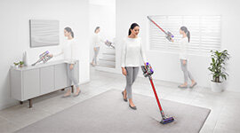 The Dyson Motorbar head is designed to dig deep into carpets and hard floors to remove stubborn dirt, dust and hair. Polycarbonate vanes automatically clear long strands and pet hair from the brush bar as you clean, so there’s no need to stop and detangle.