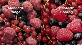 Two independent cooling systems maintain optimal temperature and humidity in both fridge and freezer compartments. By preventing air transfer between sections, TwinTech preserves natural flavours, protects textures, and keeps ingredients tasting exactly as intended.