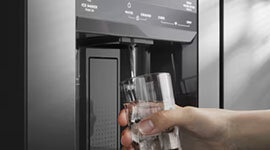 Access chilled water plus cubed or crushed ice directly from the door. The slim dispenser design maximises internal storage space, delivering everyday convenience without sacrificing capacity or compromising the clean, modern exterior.