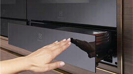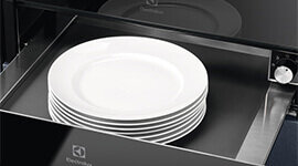 The push-to-open drawer with soft-closing action and full extension makes loading and removing plates easy, even when your hands are full. For added safety, heating automatically stops when the drawer is opened.