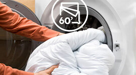 • Advanced hygiene cycles: Sanitise uses high-temperature wash and steam to reduce more than 99.99% of common bacteria and viruses, while DuvetCare 60 treats and dries suitable bedding efficiently.