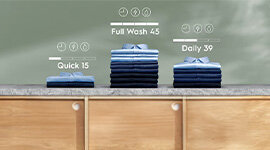 IntelliQuick selects the fastest programme for your load, delivering precise cleaning and washing up to 12kg in just 45 minutes for effortless, efficient laundry without added energy or water use.