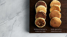 SenseFry measures heat levels and makes automatic adjustments under the pan to maintain the ideal temperature for even cooking results. Now it's easy for you to whip-up evenly browned pancakes and juicy steaks at home.