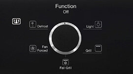 Offers a selection of fan-forced cooking, closed-door grilling (with or without fan), a defrost mode, and an oven light—ensuring flexibility for everyday meals, roasting, or gently defrosting frozen items without preheating.