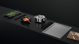 The 6" touchscreen interface is your centralised hub for all modular cooktops. Effortlessly manage auxiliary cooktops, downdraft and teppan modules, providing a streamlined cooking experience. This single screen allows you to control all cook zones and connected ventilation, ensuring a clean and sleek kitchen aesthetic.