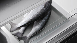The Variable Temperature Zone drawer adapts to your needs, with settings for 'Fruit & Veg', 'Beverage', or 'Meat & Seafood', creating ideal conditions to help keep different foods fresher for longer.
