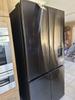 Ultra slim water dispenser on door, automatic ice maker dispenses ice into a dedicated freezer drawer.