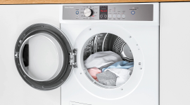The 7kg vented dryer from Fisher and Paykel features 10 different programs so you can find one that suits each load, providing consistent drying results. This machine features a large dial and LED display panel for more convenient control and with auto-sensing capabilities that end the cycle when clothes are dry, energy is saved and clothes last longer. This model also comes with a drying rack for your items that are too delicate to tumble dry.