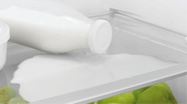Cleaning the exterior is easy thanks to the EZKleen Stainless Steel finish, and if accidental spills occur within the fridge, the spill safe glass shelves will contain drips, making it a lot easier to wipe up.