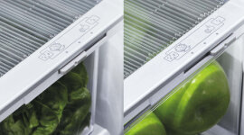 Your fruit and vegetables need different environments. The humidity control slides in each storage bin to create a microclimate that helps keep food fresher for longer.