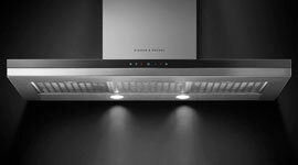 This canopy rangehood's sleek curving glass and stainless steel finish will complement any contemporary kitchen and is designed to match the rest of Fisher & Paykel's kitchen appliance family.