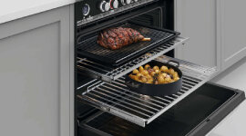 The pyrolytic function uses very high heat to turn food residue inside the oven into ash, which can then be wiped away. To make it even easier, the side racks are enamel-coated so they don’t need to be removed for this function.