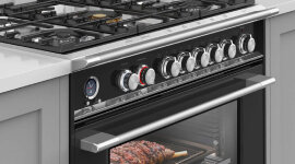 Thoughtful design details like soft-close doors, a CoolTouch quad-glazed oven door, and illuminated halo dials enhance usability and safety. Whether you're baking pastries, grilling meats, or preparing an entire holiday meal, this dual fuel cooker delivers professional results with style and ease.