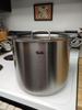 Introducing the Fissler 24cm/9.1L Original-Profi 2.0 Collection High Stew Pot. This pot is designed with compatibility in mind, featuring an induction-compatible Cookstar® all-stove base that ensures optimal heat distribution on every type of stovetop. Crafted from satin finished 18/10 stainless steel, this pot is sustainably made from up to 90% recycled stainless steel, ensuring durability for generations to come. The pot also boasts a Condensate-Plus function, with a slightly concave metal lid that allows steam to drip back into the pot, enhancing the juiciness and flavor of your dishes. With an integrated measuring scale in liters and quarts, measuring liquids becomes a breeze. The extra large pouring rim enables convenient and precise pouring without any spills. The stay cool metal handles provide an ergonomic grip and ensure a pleasant temperature even when the pot is hot. Other notable features include its suitability for ovens up to 230°C and its dishwasher-safe design. Proudly made in Germany since 1845, Fissler continues to lead in technology, craftsmanship, and the use of premium materials. Elevate your cooking experience with the Fissler 24cm/9.1L Original-Profi 2.0 Collection High Stew Pot.