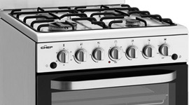 The 80L gas oven also includes an electric grill giving you a variety of cooking options. And for added safety the oven's double-glazed glass door will help to minimise heat transfers. The door is also removable for easier cleaning.