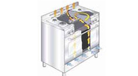 Delonghi ovens are equipped with an innovative cooling system for both the door and the oven. The oven cooling system is designed to minimise heat transfer by circulating a cool air curtain around the oven. The door cooling system ensures the external surface of the door remains cool preventing accidental burns.