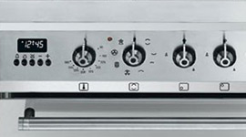 The five gas burners and powerful electric oven are all managed via an easy to read panel of simple dials. Combined with an electronic clock that includes a timer it's easy to keep your cooking under control.