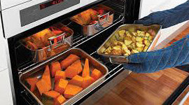 The large capacity oven gives you plenty of cooking space and endless options for food preparation. It’s more than capable of accommodating large roasts and multi-level family cooking.