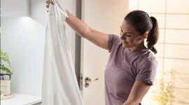 Freshen up clothes quickly with the dryer's dual Steam Deodorise and Refresh functions. Deodorise helps reduce odours, while Refresh uses steam to smooth wrinkles, so your clothes look and smell great.