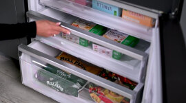 The freezer offers three easy-access drawers, which gently glide open with a light pull. This layout allows for easy organisation of your frozen items, from frozen fish to frozen yoghurt. If you’ve just come home with a big grocery haul, select the SuperFreeze function to snap-freeze your groceries to preserve their freshness and flavour.