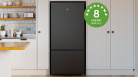 Built to fit a standard Australian kitchen cavity, this model delivers a streamlined look without requiring modifications to surrounding cabinetry. Its flat door design and recessed handle add to the modern finish, helping it sit neatly within contemporary kitchens while still offering a spacious 517L capacity. The reversible door also adds flexibility, making installation easier in a wider range of room layouts.