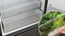 A 70:30 fridge-to-freezer split provides extra room for fresh groceries, while the Humidity Zone drawer helps maintain a better storage environment for fruit, vegetables, and deli items, keeping everyday ingredients organised and easier to access.