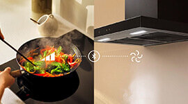 The cooktop also features hood-to-hob connectivity, pairing effortlessly with a compatible rangehood. As the cooking zones adjust in power, the rangehood automatically matches its extraction rate, maintaining a fresh, comfortable kitchen environment free from excess steam, smoke, and lingering odors.