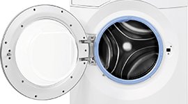 Simply insert your low-sud or high-efficiency powder into the washing machine’s detergent drawer and move from left to right along the control panel, selecting your options and cycle type, then press start and you’re all set. The large 32 cm glass door not only makes it a stylish-looking machine, it also means you can easily throw in all your washing without struggling to fit it all in the machine.