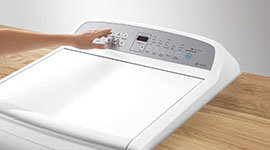 This 12kg top loading washing machine from Haier has a capacity suitable for a large family. The one-piece tempered glass lid has a soft closing mechanism, meaning it won’t accidentally slam shut or pinch any fingers as it closes, making a more child-friendly household. The drum of this top loader has a pillow like design so that it’s gentler on clothing while the cycle is in progress.
