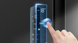 The electronic touch control panel offers a clear and intuitive way to manage refrigerator settings. With a simple tap, users can adjust fridge and freezer temperatures or activate features such as Eco and Holiday modes. The streamlined digital interface allows quick, precise control to maintain an ideal cooling environment.