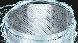 A two-tier waterfall channel delivers thorough water coverage for both small and large loads. Paired with an interior impeller that boosts water movement, it improves wash efficiency, supports fabric care, and helps shorten cycle times.