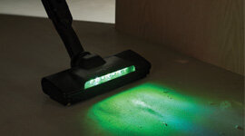 Seven white and green LED lights illuminate the cleaning path, revealing fine dust that often escapes the eye. Visibility is enhanced across both bright and low light environments, ensuring no detail is missed. This focused illumination brings clarity and precision, supporting a more meticulous and confident clean.