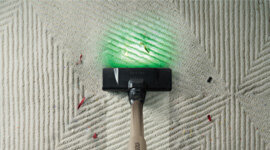 Details refine the everyday ritual. A wide carpet brush head covers more ground in fewer passes, with green LED illumination revealing fine dust that might otherwise go unnoticed. The digital display keeps settings and battery levels clearly visible, while selectable power modes tailor performance to the surface underfoot. Supported by a thoughtful range of accessories and smooth rotating head movement, this vacuum brings clarity, control and confidence to caring for the home.