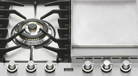 The precision control burners give you full control over your cooking so you can lightly simmer or intensely sear effortlessly. Cleaning is easy, thanks to fewer crevices and removable trivets and burner caps. One-touch automatic electronic ignition makes it easy to get going. For added safety, each burner is fitted with a flame failure safety device, meaning if a flame goes out, the gas supply is cut.