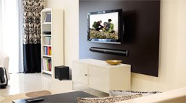 Especially impressive with a thin-profile TV, the JBL CINEMASB250AS’s contemporary, curved design fits comfortably into any home. Position it on a cabinet top or entertainment unit, or wall-mount it for a flush finish.