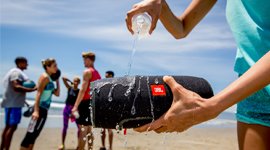 The JBL Xtreme Wireless speaker offers dynamic, portable wireless sound quality. Its specially-designed rugged exterior is highly durable and splashproof, and available in black, red, and blue. With an outstanding playtime of up to 15 hours thanks to a rechargeable battery, it’s perfect for the beach or BBQ. Dual USB ports allow up to 2 smart devices to simultaneously charge on-the-go, and it’s just as easy to link up another JBL Connect-enabled speaker. Not only that, you can enjoy crisp, clear conference call capability with its noise-canceling features.