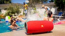 Whether you’re camping, at a BBQ, or the beach with friends, or you’re just after a powerful, portable home speaker option, this JBL speaker goes where you go. Its tightly-woven fabric exterior and rugged rubber speaker housing is portable and splashproof and great for the outdoors, and it even comes with a carry strap.