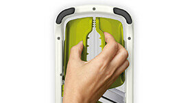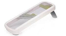 Equipped with stainless-steel blades, this mandolin offers cutting precision. It's adjustable to three slice thicknesses and two julienne thicknesses, for a variety of preparation needs.