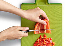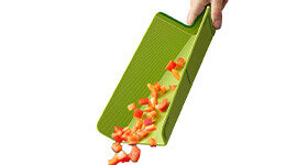 Complementing the mandoline is the Joseph Joseph Chop2Pot Plus Folding Chopping Board in vibrant green. This is the original folding chopping board, and it's a game-changer in the kitchen. Its innovative folding design makes transferring food a breeze, reducing the mess and making cooking more enjoyable. The textured, knife-friendly cutting surface ensures precision without dulling your knives. With a soft-grip handle and non-slip feet, this chopping board is both functional and user-friendly. It comes in two sizes, regular and large, to accommodate your specific cutting needs.