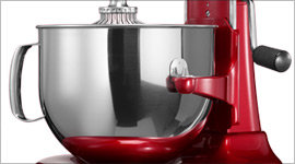 A 6.9-litre mixing bowl means larger batches, and larger batches means there is the need for greater bowl support. KitchenAid’s bowl-lift functionality will ensure you can mix enough dough for 14 dozen cookies and not have to worry about any accidents.
